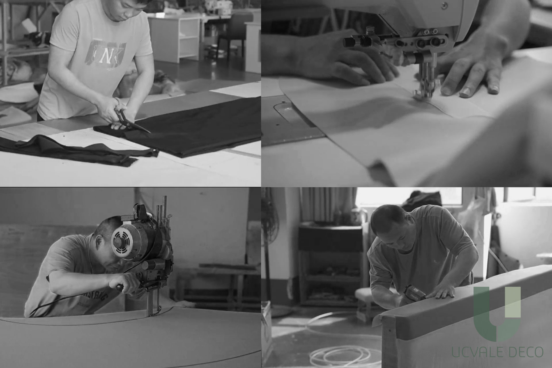 Mounting the foam on frames, handling with vinyl, leather, and all kind of fabric.