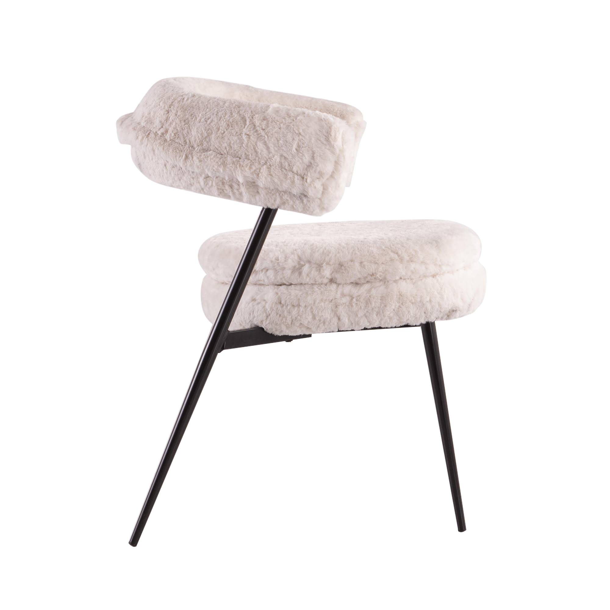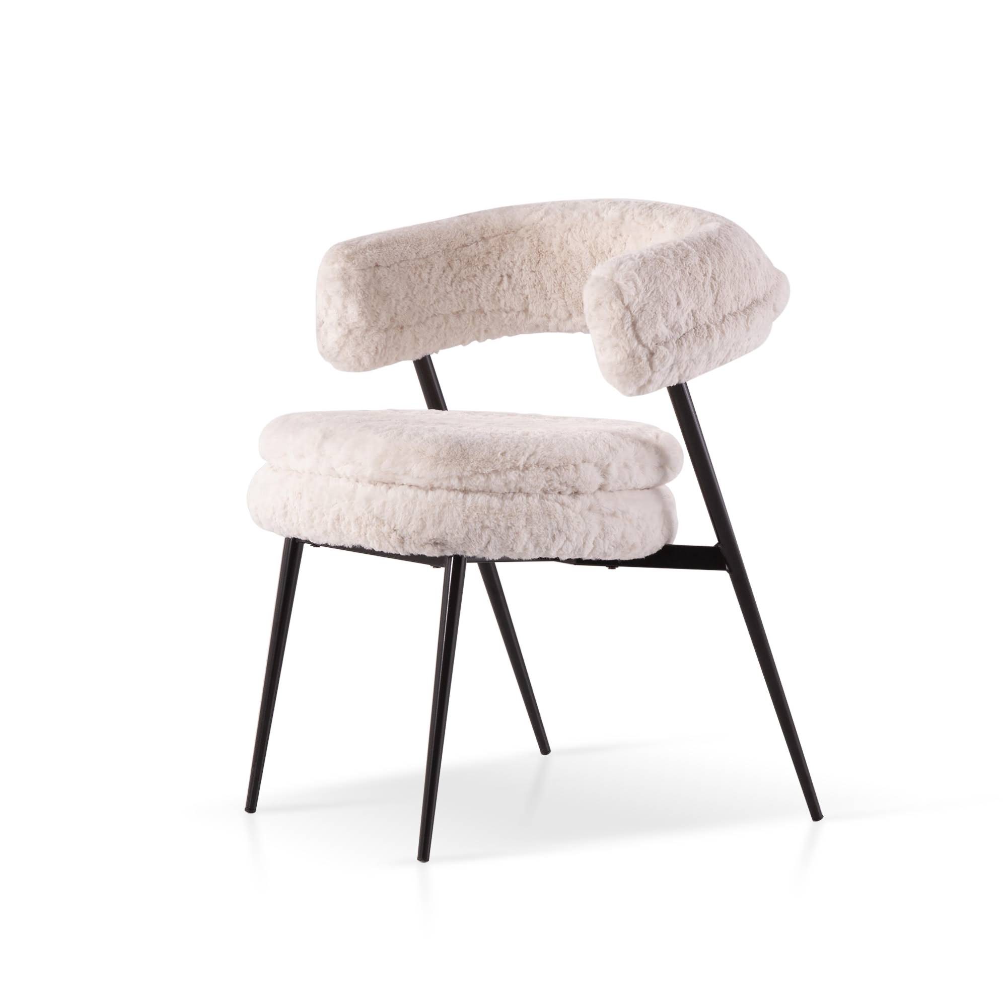 The dining chair with metal frame and fabric upholstery.